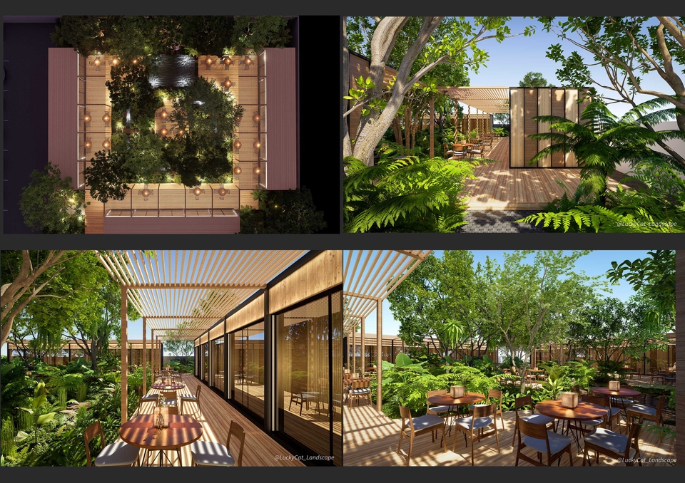 ออกเเบบสวน(ส่วนกลางโรงเเรม สวนสาธารณะ คาเฟ่ขนาดใหญ่ )