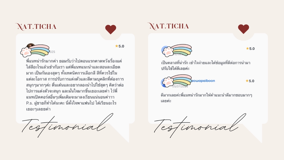 - • สามารถนำเสื้อผ้าและเครื่องสำอางของตัวเองมาเช็คโทนสีกันในคลาสได้เลย