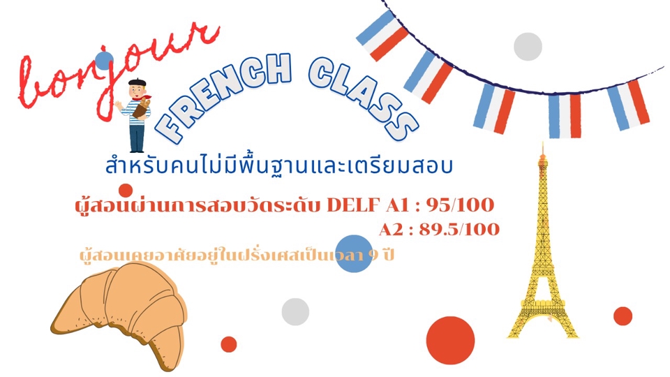 ติวเตอร์ภาษาฝรั่งเศสสำหรับน้องๆหรือบุคคลที่สนใจที่จะเรียนภาษาฝรั่งเศสตั้งแต่ระดับพื้นฐานไปจนถึงสอบวัดระดับ DELF A1-A2 รวมถึง TCF ผู้สอนเคยอาศัยในฝรั่งเศสมา9ปี สอบวัดระดับ DELF A1: 95/100 A2: 89.5/100