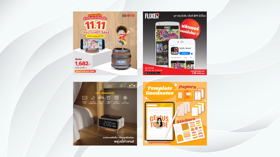 ออกแบบสื่อเพื่อโปรโมท เพิ่มมูลค่าให้สินค้า เป็นหน้าตาของแบรนด์ และเพิ่มความน่าจดจำมากขึ้น จากประสบการณ์การออกแบบภาพคอนเทนต์มามากกว่า 4 ปี ผลงานมากกว่า 1,000 ภาพ และ ลงเพจมากกว่า 10 เพจ สามารถออกแบบได้หลากหลายแนว และตรงตามความต้องการ โดยมีการซื้อรูปภาพที่ถูกลิขสิทธิ์เพื่อใช้เป็นส่วนประกอบในการออกแบบ ------------- สิ่งที่ต้องเตรียมในการบรีฟงาน - ลูกค้าต้องเตรียมไฟล์ Logo ของแบรนด์ (ไฟล์ .ai / .psd / .png หรือ .jpg) - แจ้งคอนเสปที่ต้องการ เช่น สไตล์การออกแบบ โทนสี สามารถส่งตัวอย่างงานที่ใกล้เคียงมาให้ดูได้ - แจ้งขนาดภาพที่ต้องการนำไปใช้ เช่น 1200x800 px (แนวนอน) - ลูกค้าส่งภาพสิ่งที่ต้องการให้อยู่ในรูป เช่น ภาพสินค้า ภาพนางแบบ (ควรเป็นภาพพื้นหลังโปร่งแสง หรือ พื้นหลังขาว) - แจ้งข้อความที่ต้องการให้ใส่ลงในภาพ - สามารถแจ้งรายละเอียดเพิ่มเติม เกี่ยวกับแบรนด์ เพื่อให้งานออกมาตรงตามความต้องการได้มากขึ้น ขั้นตอนการทำงาน 1. บรีฟตกลงรูปแบบงานที่ต้องการ 2. สามารถรับงานได้ภายใน 2 วัน (ไม่รวมวันอาทิตย์) 3. หากยังไม่ถูกใจ สามารถแก้งานได้ไม่เกิน 3 ครั้ง หากแก้ไขเกิน 3 ครั้ง ขออนุญาตคิดค่าใช้จ่ายในการแก้ 4. รับงานที่เสร็จเรียบร้อยเป็นรูปภาพ (ไม่รวมไฟล์ .ai / .psd) และปิดงานในระบบ