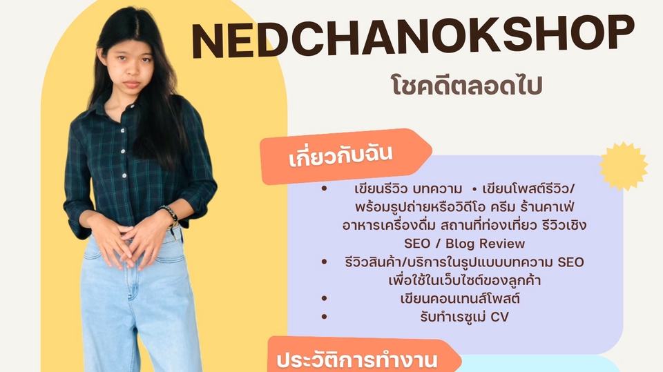 - เขียนรีวิว บทความ แค๊ปชั่นคอนเทน • เขียนแคปชันรีวิว/เขียนโพสต์ พร้อมรูปถ่ายหรือวิดีโอ ครีม ร้านคาเฟ่ อาหารเครื่องดื่ม สถานที่ท่องเที่ยว รีวิวเชิง SEO / Blog Review - รีวิวสินค้า/บริการในรูปแบบบทความ SEO เพื่อใช้ในเว็บไซต์ของลูกค้า - เขียนคอนเทนส์โพสต์