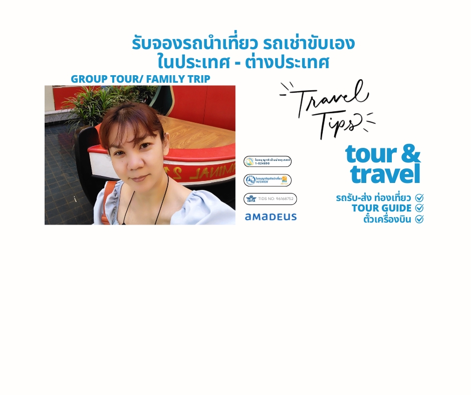 ไกด์ท่องเที่ยว ไกด์ออนไลน์ ให้คำแนะนำปรึกษาตลอดการเดินทาง รับเขียนแผนการเดินทาง เขียนโปรแกรมท่องเที่ยว จากประสบการณ์การนำเที่ยว และการเป็น Operation จัดแผนการเดินทางให้ลูกค้า ด้วย Amadeus ระบบจองสายการบิน โรงแรม ที่พัก และ ตั๋วรถไฟ ตั๋วท่องเที่ยว จาก Wholesale Travel Online. ประสบการณ์ทำงานสายการท่องเที่ยว 20 ปี จบตรงสายการท่องเที่ยว เอกสารรับรองตัวตนจาก การท่องเที่ยวแห่งประเทศไทย TAT และ IATA