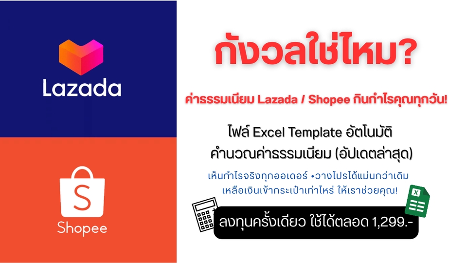 ไฟล์ Excel Template อัตโนมัติ คำนวณค่าธรรมเนียม Lazada / Shopee (อัปเดตล่าสุด)