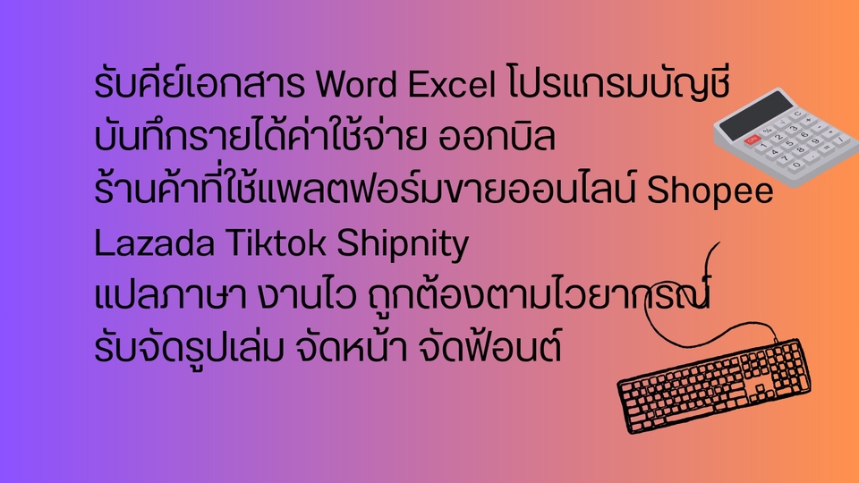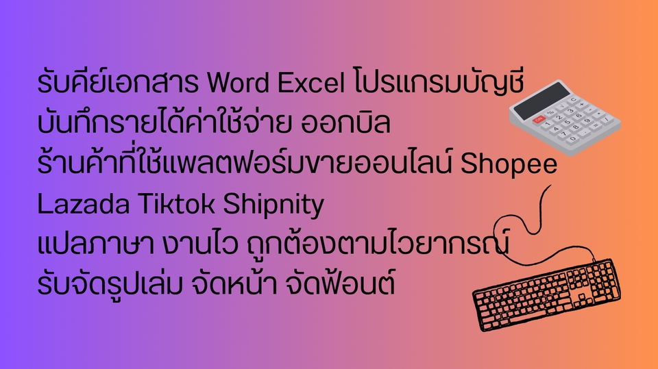 รับคีย์เอกสารงานด่วน แปลภาษา จัดหน้า คีย์ยอดซื้อขายเข้าระบบจากแพลตฟอร์มออนไลน์