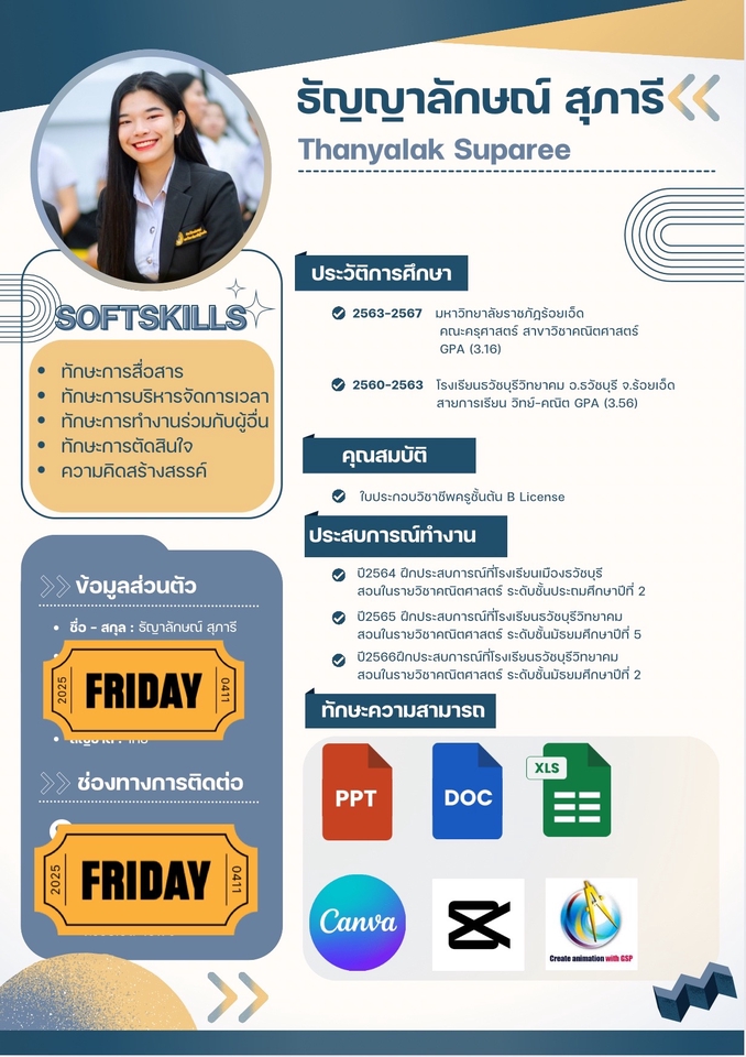 จบป.ตรี คณะครุศาสตร์ คณิตศาสตร์ ทำงานเป็นเจ้าหน้าที่บันทึกข้อมูล