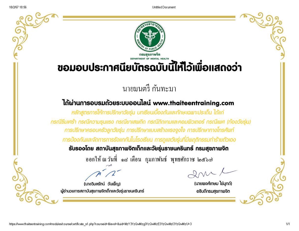 ฿500การเข้ารับบริการให้คำปรึกษาโดยการเปิดกล้องวีดีโอคอล ใช้เวลาประมาณ 30-60 นาที ต่อหนึ่ง session