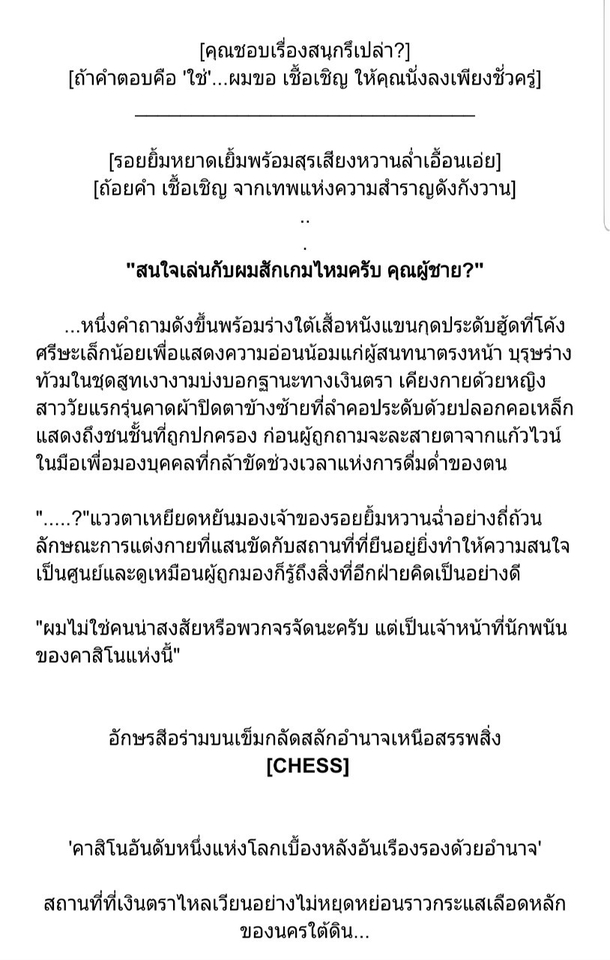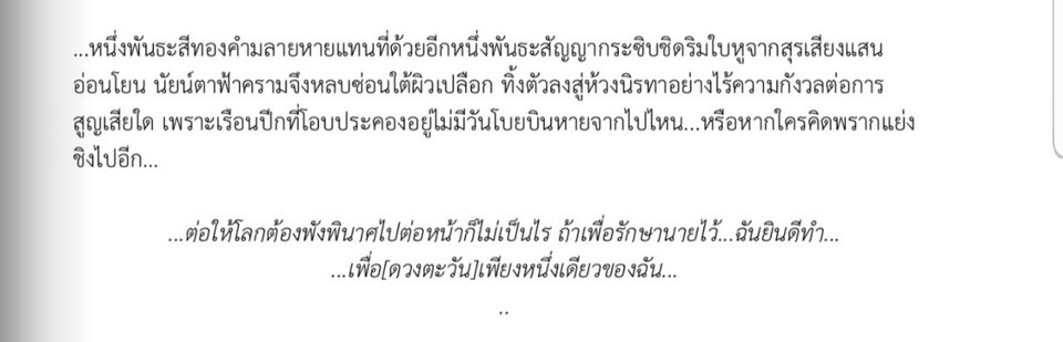 - รับคิดPlot + สร้างคาแร็คเตอร์ตัวละคร สร้างปมปัญหาในเรื่องและจุดคลี่คลาย เพื่อให้ลูกค้าท่านที่อยากนำไปแต่งต่อได้มีแนวการวางเส้นเรื่องอย่างเป็นระบบ - รับแต่งแฟนฟิค เราพร้อมสร้างโมเม้นต์ให้ | นิยายปกติสั้นยาว ประเภท : เรื่องสั้น(os)ตอนเดียวจบ เรื่องยาว(SF: 3-5 ตอน) หรือเรื่องยาว(มากกว่า5ตอนขึ้น) สามารถเขียนได้ทุกแนวค่ะ อาทิเช่น แนวรักละมุน คอมเมดี้ ดราม่า แฟนตาซี ฆาตกรรมจิตหลอน NCบาปๆ เป็นต้น **ลูกค้าสามารถกำหนดพล็อตหรือแนวเรื่องมาให้ก่อนได้ค่ะ หรือจะให้คิดพล็อตให้ก็ได้** **มีผลงานเขียนใน Dek-d | Read A Write | Wordpress ** รายละเอียดราคาเพิ่มเติม - ในส่วนเรทราคางานด่วน ขอคิดเพิ่มตามความเหมาะสม ขั้นตอนการทำงาน 1. สอบถาม-พูดคุยเกี่ยวกับพล็อตหรือแนวทางเนื้อหาที่ต้องการ (สามารถขอดูตัวอย่างงานอื่นๆได้) / ถ้าไม่มีพล็อต รับคิดและวางโครงให้ค่ะ 2. ตัดสินแนวเรื่องที่ต้องการ(โทนเรื่อง/AU/รายละเอียดที่อยากเสริม ) + บรีฟประวัติตัวละครที่ต้องการ(หากเป็นแฟนฟิค:แจ้งเรื่องแจ้งชื่อได้เลยค่ะ นักเขียนจะทำการศึกษาคาร์อย่างละเอียดให้มากยิ่งขึ้น) 3. แจ้งจำนวนคำ/จำนวนหน้าที่ลูกค้าต้องการ 4. นักเขียนเริ่มงานโดยจะส่งความคืบหน้าให้ลูกค้ารับทราบเรื่อยๆหรือลูกค้าสามารถทักมาถามได้เสมอค่ะ :) 5. เมื่อถึงกำหนดส่งงาน นักเขียนจะทำการส่งงานในรูปแบบwordและPDF 6. ในส่วนการแก้ไขได้ไม่เกิน 2 ครั้ง (เป็นการแก้ไขรายละเอียดที่ไม่ส่งผลกระทบต่อเนื้อเรื่องโดยรวม เช่น คำ สำนวนภาษา) หากเกินกว่า2ครั้งคิด ครั้งละ 40 บาทค่ะ | นักเขียนจะยึดบรึฟเป็นหลักในการทำงาน ดังนั้นขั้นตอนการบรีฟ ขอให้บรีฟอย่างละเอียดนะคะ