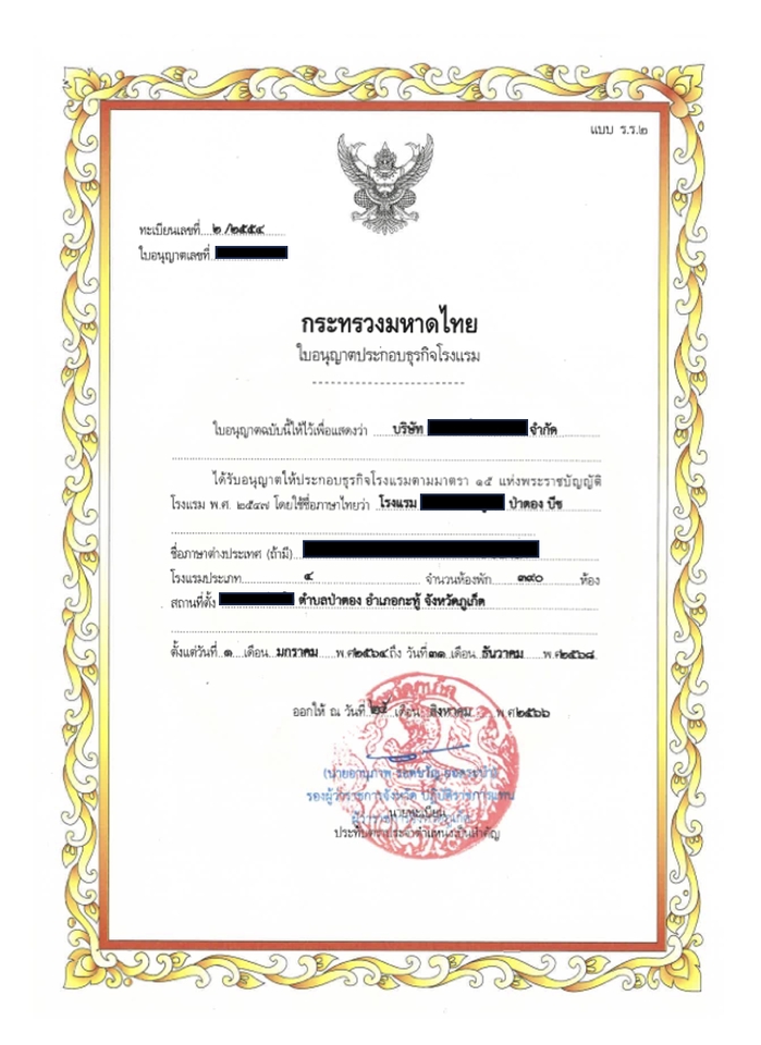 รับทำใบอนุญาตต่างๆ (โรงแรม ร้านอาหาร โฮสเทล) ใบอนุญาตประกอบธุกิจนำเที่ยว