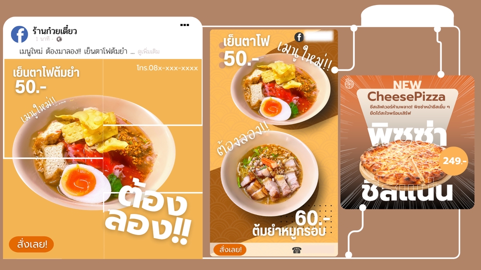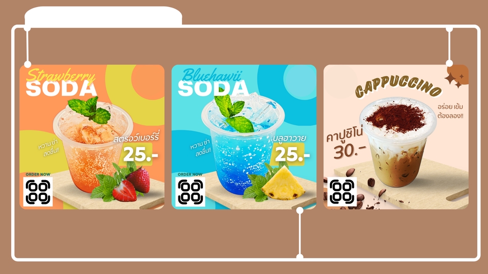ออกแบบกราฟิคต่างๆ - ใบเมนูอาหาร - ภาพโปรโมทและโปรโมชั่นสินค้า - ปก Facebook - อินโฟกราฟิค สิ่งที่ลูกค้าควรเตรียมก่อนจ้างงาน - ภาพสินค้าที่ลูกค้าต้องการทำโปรโมท (หากมี) - สไตล์งานที่คุณต้องการ (หากมี) PROGRAM SKILL - Canva ขั้นตอนการทำงาน 1. บอกรายละเอียดงานเช่น สไตล์และจำนวนงานที่ต้องการ 2. รับไฟล์ต่างๆ เช่น ภาพสินค้า 3. ทำชิ้นงานเสร็จ ส่งตรวจ 1 รอบ รับคอมเม้นจากลูกค้าและแก้ไขงานฟรี 4. ส่งงานให้ลูกค้า พร้อมปิดออเดอร์จบงาน สิ่งที่ลูกค้าจะได้รับ • ไฟล์งานส่งผ่าน e-mail (png. / jpg. / pdf.)