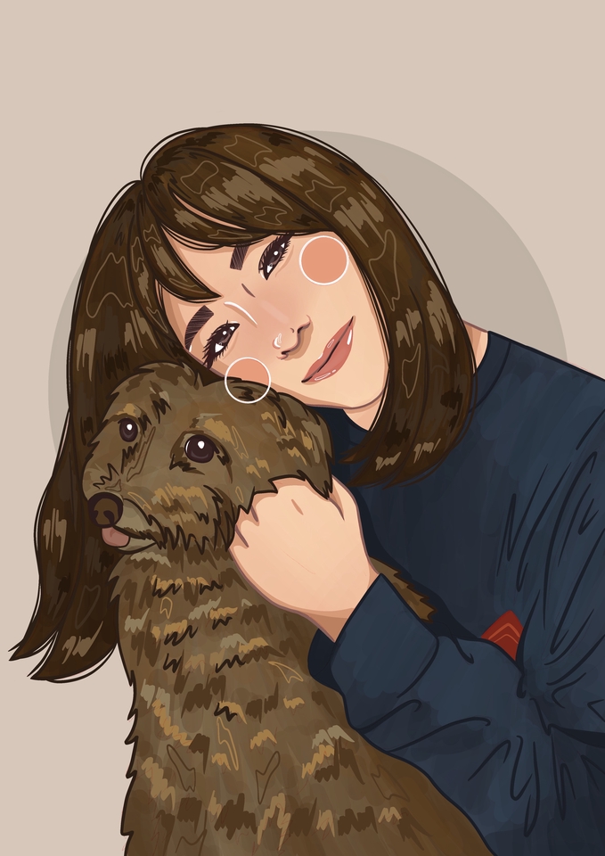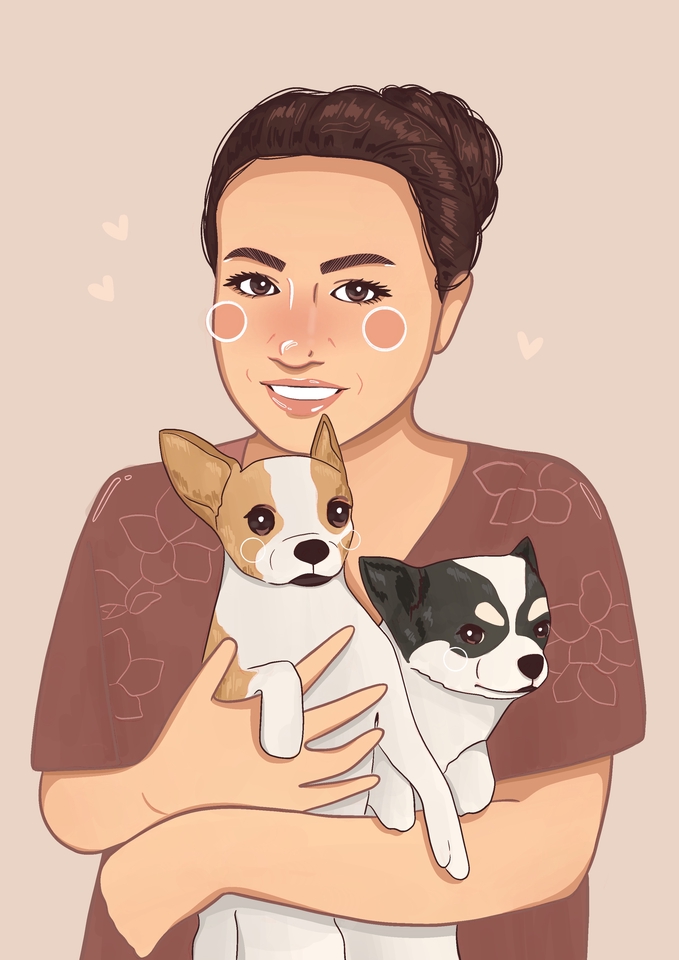 การ์ตูนจากภาพถ่าย - ครึ่งตัว 1 คน + 1 สัตว์เลี้ยง