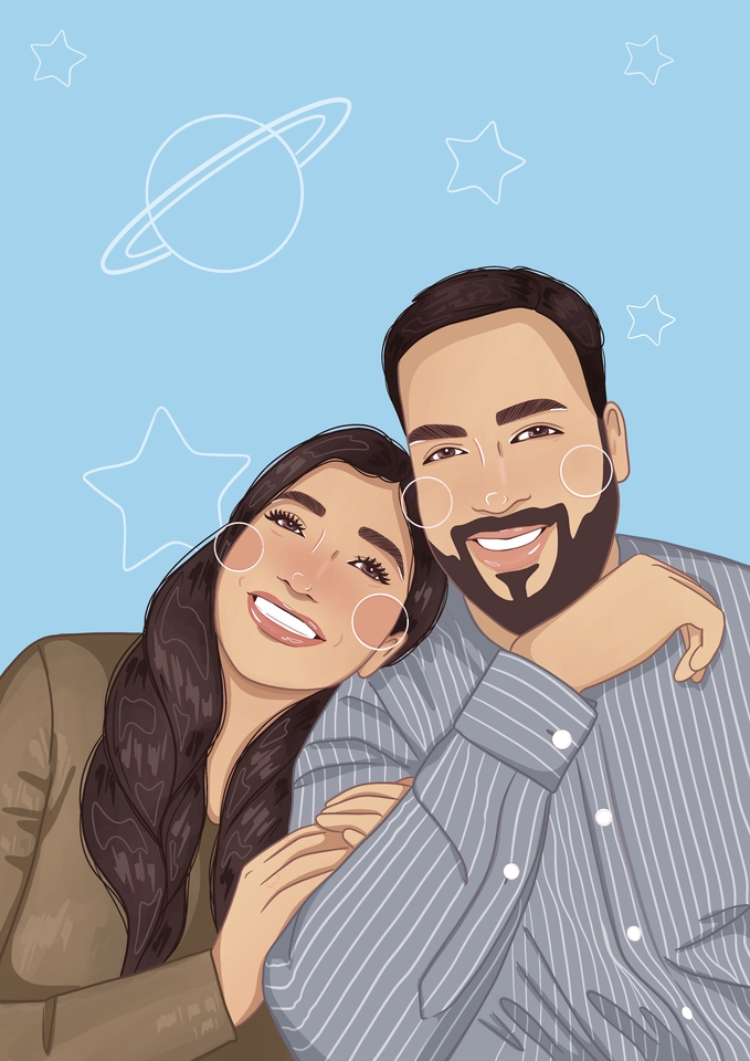 การ์ตูนจากภาพถ่าย - ครึ่งตัว 2 คน
