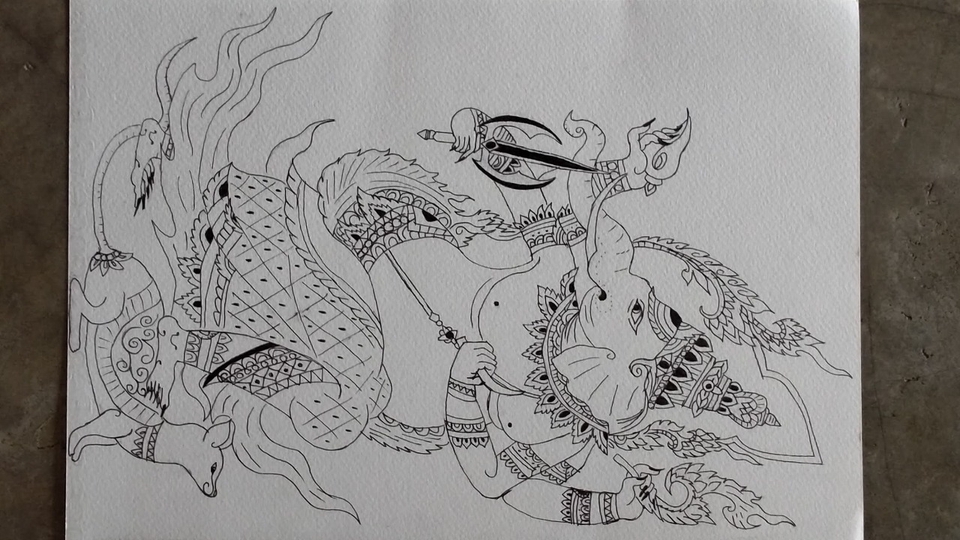 รับวาดลายเส้นพระพิฆเนศแนวไทยประเพณี | รายละเอียดคมชัด ศักดิ์สิทธิ์และงดงาม