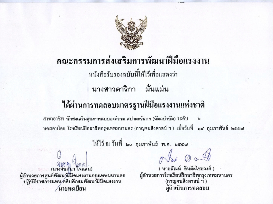 เป็นTherapist ผู้เชี่ยวชาญ จากโรงแรม 5 ดาว ผู้มากประสบการณ์ยาวนานกว่า 15 ปี ที่สอนออกกำลังกายได้ มาให้บริการถึงบ้านแล้ววันนี้
