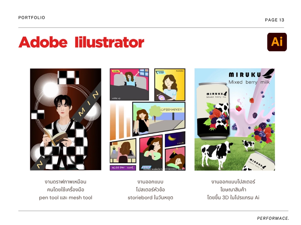 รับออกแบบกราฟิก โลโก้ งานแคนว่า งานขึ้น 3d sketch up ออกแบบบูท ห้อง ร้านค้า รับงาน Ai, Ps, Canva Poewer point รับจัดเล่มธีสิส ใส่เลขหน้า จัดหน้ากระดาษตามformat งาน word รับงานฟรีแลนซ์ เป็นผู้ช่วยสอนศิลปะเด็กได้ เคยมีประสบการณ์การสอนเด็ก รับงานเฝ้าบูท งานจัดบูท จัดสถานที่