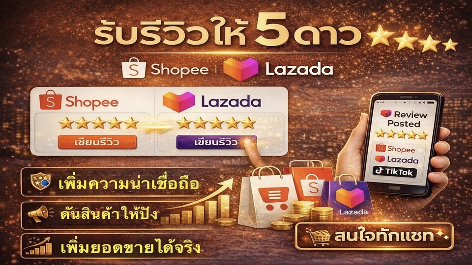 รับรีวิวสินค้าและเพิ่มยอดขาย ทั้ง lazada และ shopee