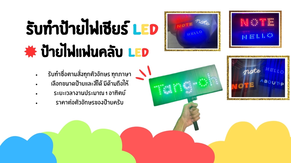 รับทำป้ายไฟLED แบบถือ สำหรับแฟนคลับ ชื่อตามสั่ง ได้ทุกตัวอักษรได้ทุกภาษา เลือกสี เลือกขนาดเองได้