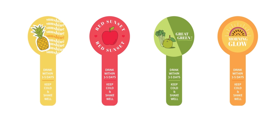 ออกแบบ Logo กับ Package ของแบรนด์น้ำผลไม้ เป็นรับออกแบบฟรีแลนซ์ค่ะ ลูกค้าต้องการสไตล์น่ารัก แต่ไม่ได้ดูเด็ก มีความผสมความวินเทจด้วย เราเลยออกแบบให้มีความ retro หน่อยๆ ผสมกับสีสันที่ดูสดใสเพื่อความน่ารักค่ะ ขั้นตอนการทำงาน 1. รับบรีฟจากลูกค้าอย่างละเอียด 2. เริ่มทำงาน 3. ส่งดราฟแรก 4. ส่งไฟล์จริงให้ลูกค้า