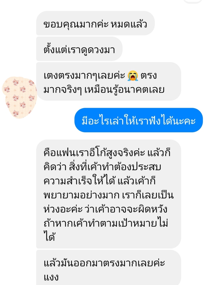ไม่ใช่เรื่องบังเอิญที่เราได้พบกัน สวัสดีค่ะ แม่หมอณัฐยิปซีนะคะ ยินดีต้อนรับทุกท่านนะคะ ไม่ใช่เรื่องบังเอิญที่เราได้พบเจอกันค่ะ วิธีการดูดวงของแม่หมอจะเป็นการใช้ "ไพ่ออราเคิล รูนส์ และทาโรต์" การันตีความพึงพอใจจากรีวิวของลูกดวงที่ได้ใช้บริการค่ะ *ดูดวงกับแม่หมอจะไม่มีการจ่ายเงินสะเดาะเคราะห์แก้กรรม ไม่รับทำพิธีคุณไสย* แต่จะมีการแนะนำเกี่ยวกับการบูชาสิ่งศักดิ์สิทธิ์ เทพ พระ หากเบื้องบนท่านสื่อมาค่ะ ขั้นตอนการทำงาน 1. นัดหมายเวลาที่สะดวก ช่องทางการติดต่อที่สะดวก (Messenger,Line) และเรื่องที่ต้องการปรึกษา 2. ได้เวลานัดหมายแล้ว ชำระเงินให้ทาง fastwork
