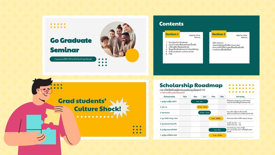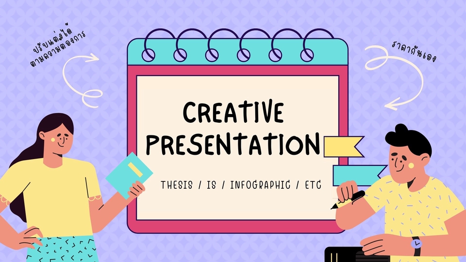 ปริญญาตรี: วิศวกรรมศาสตร์(มศว) ปริญญาโท: บริหารธุรกิจ(เกาหลีใต้) Software skills: Photoshop, Powerpoint, Excel, Procreate, Canva, SPSS Thai(Native) / English(IELTS6.5) / Korean(TOPIK4) ขั้นตอนการทำงาน 1. ตกลงรายละเอียดงาน เช่น สี ธีม ฟ้อนต์ จำนวนหน้า เวลาที่ต้องการรับงาน 2. ประเมินราคา