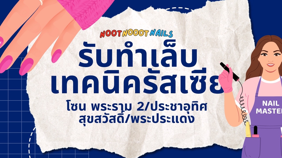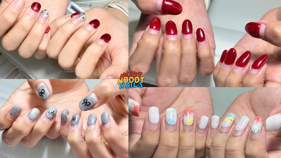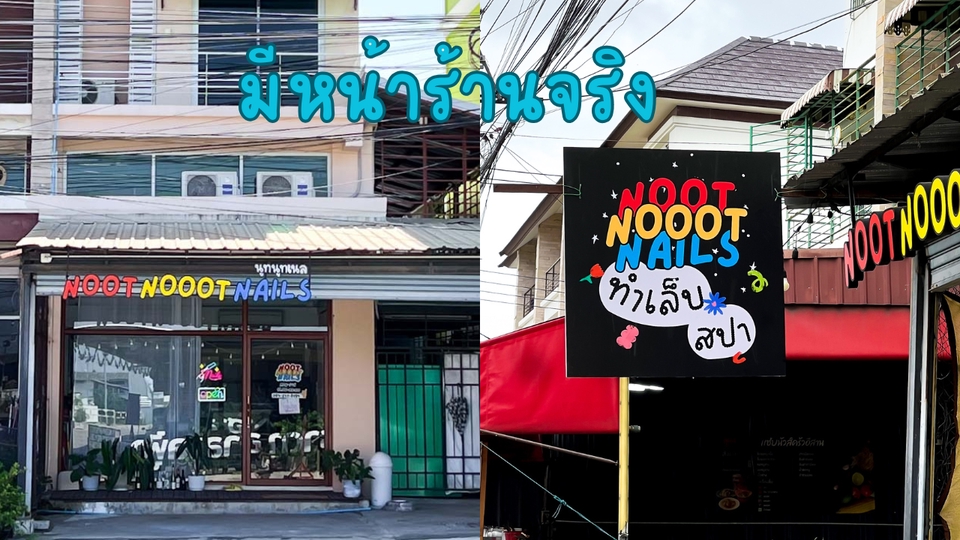 สวัสดีค่า ร้าน noot nooot nails นะคะ ทางร้านบริการทาสีเจลมือเท้า และทำสปาเท้าค่ะ ร้านอยู่ในซอยประชาอุทิศ 90 สามารถจอดรถได้ที่ตลาดStreet market ฝั่งตรงข้ามร้าน