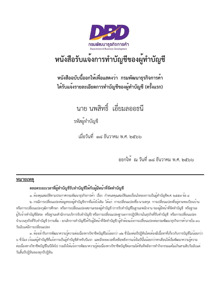 รับทำบัญชีด้วยโปรแกรม Express On Cloud -บันทึกบัญชีรายรับ รายจ่าย -ยื่นภาษีต่างๆ กรมสรรพากร/ประกันสังคม/กรมพัฒนาธุรกิจการค้า -จดแก้ไขเปลี่ยนแปลงทะเบียนพาณิชย์ เพิ่มทุน เปลี่ยนที่อยู่ที่ตั้งบริษัท -จดทะเบียนบริษัท -จดภพ.20 -ขึ้นทะเบียนนายจ้างประกันสังคม ขั้นตอนการทำงาน 1. ลูกค้าส่งเอกสารเพื่อบันทึกบัญชีในโปรแกรมบัญชี 2. ส่งเอกสารและไฟล์บันทึกบัญชีกลับคืนลูกค้า 3. ส่งงบการเงินให้ผู้สอบตรวจสอบและออกหน้ารายงาน