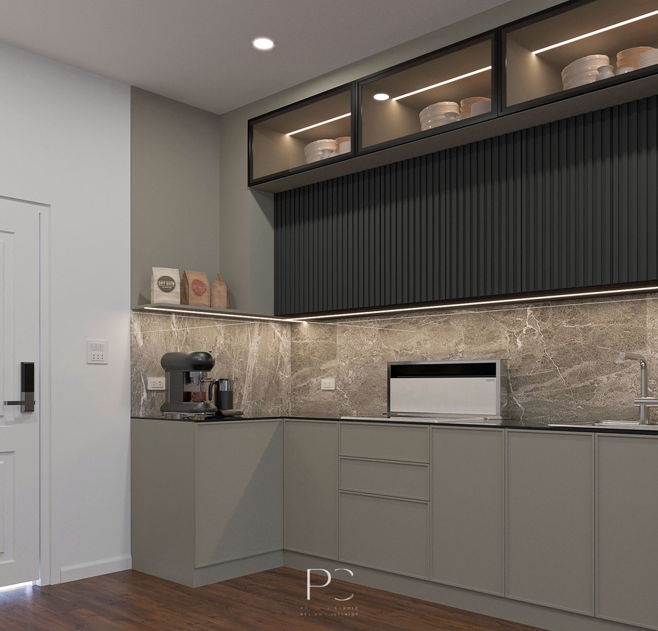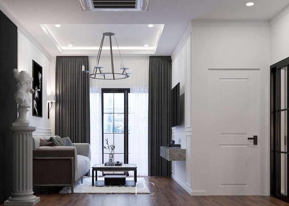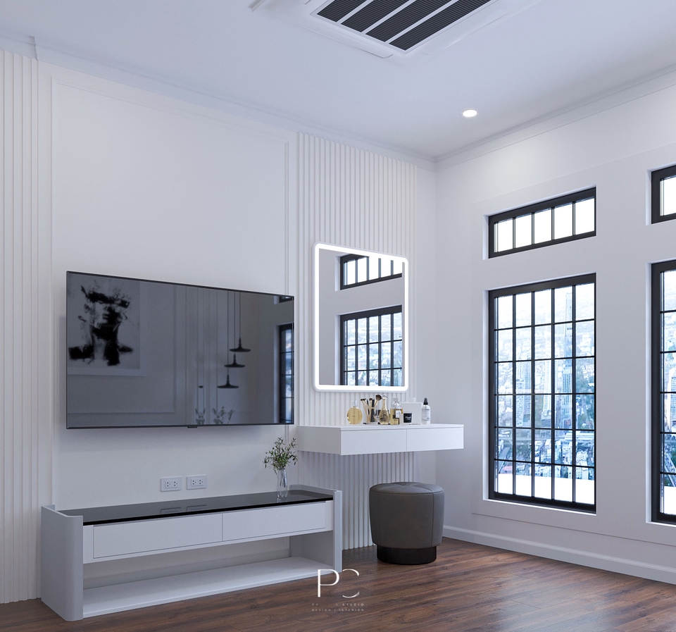 งานออกแบบตกแต่งภายใน ตอนโดมิเนียม ขนาด 46.4 sq.m. มีการตกแต่งสไตล์ Modern Classic มีการใช้โทนสีเข้มในการออกแบบ เน้นฟังก์ชั่นการใช้งานให้ครบภายในพื้นที่คอนโด มีความทันสมัยรวมกับความคลาสสิค ทำให้ห้องดูไม่น่าเบื่อ น่าอยู่อาศัยมากขึ้น ขั้นตอนการทำงาน 1. รับบรีฟรายละเอียดงานกับผู้ว่าจ้างตามความต้องการ 2. ทำแบบ 3D Rendering + Perspective Draft 01 3. ทำแบบ 3D Rendering + Perspective Draft 02 4. ทำแบบ 3D Rendering + Perspective Draft 03 5. ทำแบบสรุปส่งผู้ว่าจ้างตาม Package ที่ผู้ว่าจ้างเลือก