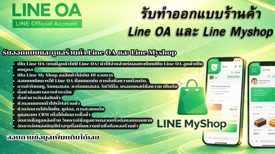 รับดูแลร้านค้าออนไลน์ Line OA + Line MyShop ดูแลระบบ CRM จัดการตั่งค่าร้านค้า