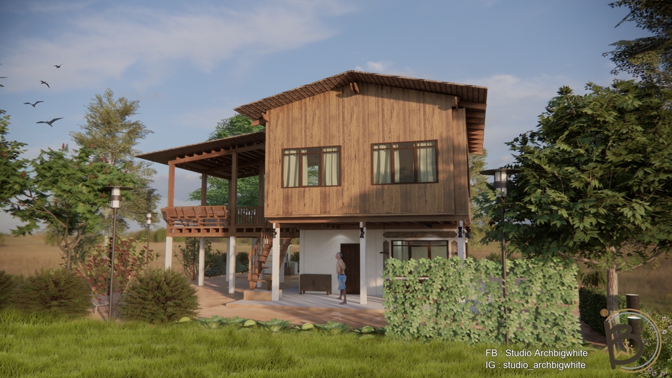 บ้านหลังนี้ถูกสร้างเมื่อ 20 กว่าปีก่อนโดยเป็นการสร้างของพ่อและแม่แต่ไม่สำเร็จ และทุกครั้งที่ได้กลับอุบลจะรู้ว่าหลังนี้คือบ้านตัวเอง แต่ตอนเด็กก็รับรู้เฉยๆพอมาวันหนึ่งจะเข้ามหาลัย เลยรู้ว่าหลังนี้เป็น inspiration ในการเรียนถาปัตย์ แต่หลังจากพ่อเกษียณ พ่อเอาเงินเกษียณทั้งหมดมาทำบ้านจนเสร็จ แต่ใช่ว่าจะอยู่ได้แบบสบายเพราะไม่มีน้ำ-ไฟ เนื่องจากบ้านถูกสร้างก่อนกฏหมายการก่อสร้างที่มากมายจะออกมา สร้างก็ไม่เสร็จ และแล้วการที่ได้เรียนมา 5 ปี ก็ได้ใช้ คือเขียนแบบยื่นขออนุญาต พร้อมเซ้นแบบเองลายเซนแรกคือบ้านตัวเอง จนได้บ้านเลขที่และน้ำ-ไฟ มา...ถึงจะไม่ได้เป็นคนออกแบบต่อจากเดิมแต่หลังนี้ก็คือ "พ่อสถาปนิกออกแบบ"แต่ก็โครตจะภูมิใจฝีมือพ่อ details แต่ละจุดเนียบมากเก็บมุมเข้ามุมเปะ สถาปนิกรึจะสู้พ่อสถาปนิก ขั้นตอนการทำงาน 1. สอบถามรายละเอียดของงานเบื้องต้นเพื่อวางมัดจำ 30% ของราคาทั้งหมด 2. สอบถามรายละเอียดของงานเพิ่มเติม 3. ข้อมูลของงานที่ต้องมี 4. ส่งงานให้ลูกค้าเพื่อพัฒนาต่อตามความต้องการลูกค้า 5. ทำการแก้งาน รอบแรกพร้อมค่าจ้างงวด2 6. พัฒนาผลงานตามความต้องการของลูกค้าตามจำนวนครั้งที่เหลือที่กำหนด 7. ส่งงานลูกค้า พร้อมค่าจ้างที่เหลือ