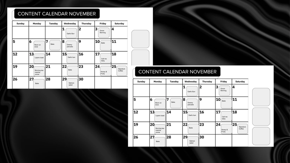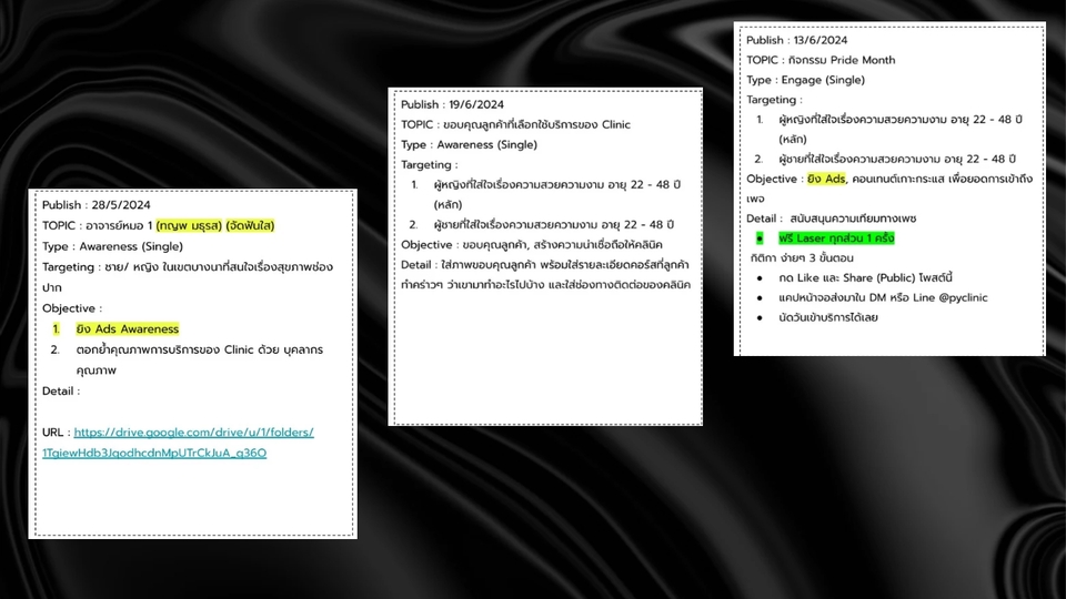 🌟 รายละเอียดรูปแบบงาน 🌟 🍀 วางแผนคำนวนคอนเทนต์ พร้อมลงปฏิทิน + Topic ideas - ประเภทของแต่ละคอนเทนต์ - Topic, Target, Objective, Detail - เพื่อสานต่อ artwork และ แคปชั่น 🍀 สิ่งที่ลูกค้าจะได้รับ - อิสระทางความคิดและเวลา ไม่ต้องปวดหัวและเสียเวลาในขั้นตอนการวางแพลน - ไฟล์งานไอเดียคอนเทนต์ในรูปแบบ .pdf และแชร์เป็นลิงค์ที่สามารถแก้ไขได้ - ไฟล์งานปฏิทิน .pdf และแชร์เป็นลิงค์ที่สามารถแก้ไขได้ *ประสบการณ์การทำงานในวงการร่วม 3 ปี (อสังหาฯ, คลินิกเสริมความงาม, คลินิกทำฟัน, ร้านอาหาร, อาหารเสริม และอื่นๆ) ✨ ขั้นตอนการทำงาน ✨ 1. พูดคุยรายละเอียดที่ลูกค้าต้องการ 2. ลูกค้าทำการชำระเงิน 3. จัดทำแพลนงานตามที่ลูกค้าต้องการ 4. ส่งมอบงานเป็นไฟล์ .pdf ขั้นตอนการทำงาน 1. รับบรีฟจากลูกค้า จัดแจงข้อมูลและนำเสนอไอเดียร่วม 2. ลูกค้าทำการชำระเงิน 3. จัดทำแผนงานตามขั้นตอน 4. แจงรายละเอียดให้ลูกค้าเบื้องต้น 5. ส่งชิ้นงาน Final ให้ลูกค้า