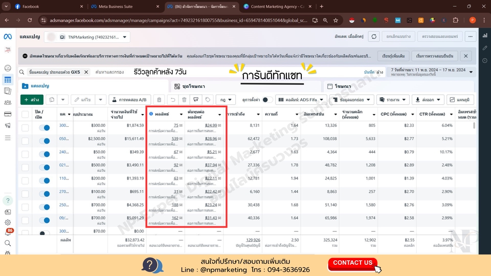 📌 กำหนดกลุ่มเป้าหมายอย่างเฉพาะเจาะจงสำหรับโฆษณาบน Facebook, IG, TikTok, Shopee และ Lazada เพื่อเข้าถึงลูกค้าที่ใช่ 🙍♂🙍♀🤱 📌 วิเคราะห์และกำหนดกลุ่มลูกค้าอย่างแม่นยำ 🎯 📌 บริการยิงโฆษณาตามเป้าหมายที่ลูกค้าต้องการ เช่น เพิ่มยอดไลค์ สร้างการมีส่วนร่วมกับเพจ และเพิ่มยอดขาย 📌 ให้คำปรึกษาในการปรับแต่งโฆษณา (Optimizing) อย่างต่อเนื่อง 📌 วิเคราะห์คู่แข่งและพัฒนากลยุทธ์ให้มีความโดดเด่นและเหนือกว่าคู่แข่ง ดูแลโดย Facebook Campaign Manager ผู้เชี่ยวชาญที่มีด้วยประสบการณ์ทำงานด้วยการตลาดออนไลน์มากว่า 8 ปี จะสามารถช่วยแนะนำธุรกิจของท่านให้ประสบความสำเร็จยิ่งขึ้นได้ ขั้นตอนการดำเนินงาน 1. วิเคราะห์ข้อมูลสินค้าอย่างละเอียด 2. สร้างและส่งกลุ่มเป้าหมายที่เหมาะสมกับประเภทสินค้า 3. ในกรณีที่ผลลัพธ์ยังไม่เป็นไปตามเป้า ปรับกลุ่มเป้าหมายใหม่ 4. หากยังไม่ดีขึ้น เราจะเสนอแนะแนวทางในการปรับ Caption/Creative 5. ให้บริการปรับแก้ Caption/Creative ใหม่ สำหรับลูกค้าที่เลือกแพ็กเกจเสริม ขั้นตอนการทำงานสำหรับ โปรโมท/ยิงโฆษณาบน Facebook Ads 1. ศึกษาธุรกิจและวิเคราะห์กลุ่มเป้าหมาย 2. วางแผนกลยุทธ์การตลาดสำหรับแต่ละแพลตฟอร์ม ขั้นตอนการทำงาน 1. ศึกษาธุรกิจและวิเคราะห์กลุ่มเป้าหมาย 2. วางแผนกลยุทธ์การตลาดของธุรกิจนั้นๆ 3. ออกแบบคอนเทนต์และจัดทำเนื้อหา 4. ยิงโฆษณาและจัดการงบประมาณ 5. ติดตามผลและปรับปรุงแคมเปญ 6. สรุปผลและส่งรายงานให้ลูกค้าทุกๆวีค