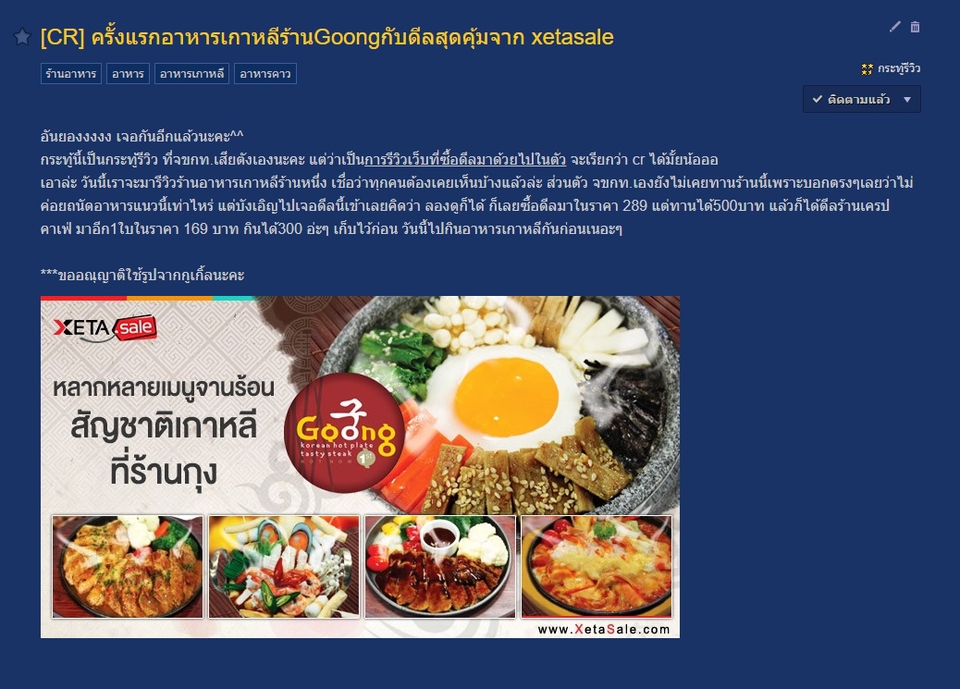 ฿5,0001. เราจะไปถ่ายภาพสำหรับใส่ในคอนเทนต์ให้ (ค่าใช้จ่ายตามจริง) 2. คิดหัวข้อและเรียบเรียงเนื้อหาให้ทั้งหมด+ปรับภาพให้ 10-15 ภาพ 3. ทำภาพปกให้ 1 ภาพ 4. นำ Seeding ไปโพสต์ให้จำนวน 3 Website 5. ใช้เวลาทำงาน 7 วัน (ไม่รวมวันถ่ายทำ) ** ค่าใช้จ่ายที่แจ้งเป็นราคาค่าเขียน Content+ค่าทำภาพเท่านั้น** หากมีการออกไปถ่าย ณ สถานที่จริง ลูกค้าเป็นผู้รับผิดชอบค่าใช้จ่าย เช่น ลูกค้าต้องการถ่ายโปรโมทร้านอาหารทางทีมงานมีกล้องและวางแผนรูปแบบการถ่ายไป แต่ลูกค้าจะเป็นผู้ออกค่าใช้จ่ายเรื่องการเดินทาง ค่าอาหาร และอื่นๆ