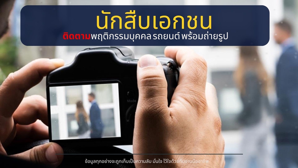 นักสืบเอกชน ทีมงานของเราพร้อมดูแลเคสของท่านอย่างเต็มที่ โดยรักษาความลับอย่างเคร่งครัด บริการนักสืบ 1. ขับรถติดตามรถยนต์ของบุคคลที่คุณลูกค้าต้องการ ว่าขับไปไหนบ้าง ไปทำอะไร พร้อมรายงานความเคลื่อนไหวและถ่ายภาพค่ะ (เป้าหมายในการขับรถติดตามรับเฉพาะขับรถยนต์ส่วนบุคคลนะคะ สำหรับติดตามมอเตอร์ไซค์และเดินทางโดยรถสาธารณะตอนนี้ยังไม่ได้รับค่ะ) 2. เฝ้าสังเกตหน้าร้าน หน้าบ้าน (รับเฉพาะสถานที่ที่สามารถจอดรถเฝ้าได้) 3. งานสืบต่างๆ เช่น เข้าไปซื้อของร้านค้า ปลอมตัวเป็นลูกค้า เพื่อสืบข้อมูลค่ะ --------------------------------------- - ค่าบริการ กรุงเทพและปริมณฑล 4 ชั่วโมง 1,500 บาท 8 ชั่วโมง 3,000 บาท ติดตามที่ต่างจังหวัดสอบถามเพิ่มเติมได้เลยค่ะ *คุยงาน จ้างงานผ่านแชททาง Fastwork เท่านั้นค่ะ* --------------------------------------- เรามีทีมงานทั้งผู้ชายและผู้หญิง เพื่อความเหมาะสมกับลักษณะงานแต่ละเคส งานคุณภาพ รายงานเรียลไทม์แน่นอนค่ะ ด้วยประสบการณ์ทำงานสืบมาหลายปี ผ่านการสืบมาแล้วหลายเคส สืบเพื่อทราบข้อมูลและความเคลื่อนไหว หรือ สืบเพื่อนำหลักฐานไปดำเนินคดีต่อ ยินดีให้คำปรึกษาก่อนรับงานทุกครั้งค่ะ --------------------------------------- "ทุกขั้นตอนในการติดตามดำเนินภายใต้กฎหมาย เพื่อปกป้องสิทธิของลูกค้าและความปลอดภัยทางกฎหมายของทีมงาน" ขั้นตอนการทำงาน 1. ลูกค้าแจ้งรายละเอียด ข้อมูล พิกัด สำหรับจุดเริ่มต้นที่จะให้ลงติดตามเฝ้า 2. ให้คำปรึกษา วางแผนการทำงาน 3. แจ้งรายละเอียด และค่าใช้จ่าย 4. ส่งใบเสนอราคา 5. เริ่มการทำงาน ลงพื้นที่จริง รายงานผล พร้อมรูปภาพ แบบเรียลไทม์เมื่อมีการเคลื่อนไหวค่ะ