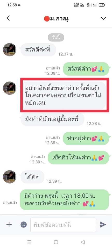บริการเฉพาะลิฟติ้งขนตา. ลิฟติ้งขนคิ้ว ย้อมขนตาคมเข้มให้ดูดกดำ. บริการนอกสถานที่เท่านั้น บริการรับทำถึงบ้าน ไม่มีหน้าร้าน