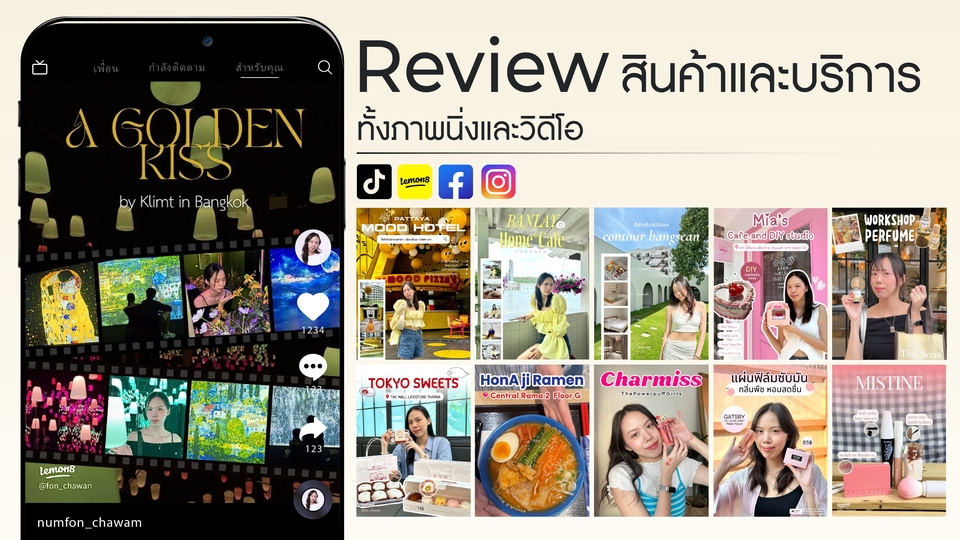 ฿1,000ได้รับไฟล์ภาพนิ่ง 5-10 รูป พร้อมแคปชั่นรีวิว ลงได้ทุกช่องทางตามตกลง