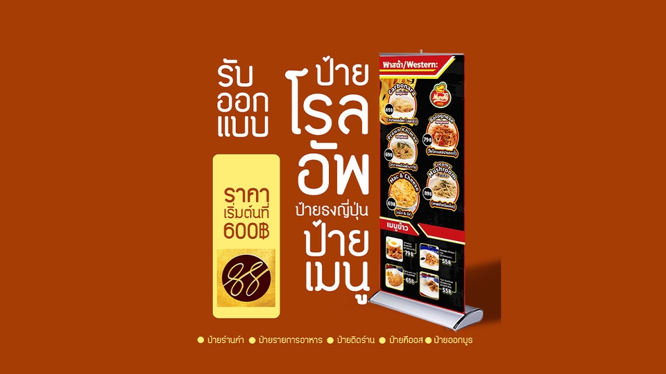 ออกแบบป้าย ออกแบบป้ายเมนู ป้ายร้าน ป้ายธงญี่ปุ่น โบรชัวร์ แผ่นพับ ป้ายเมนู ป้ายรายการอาหาร