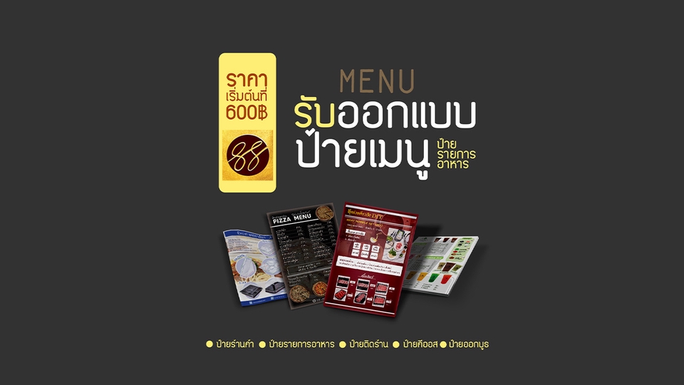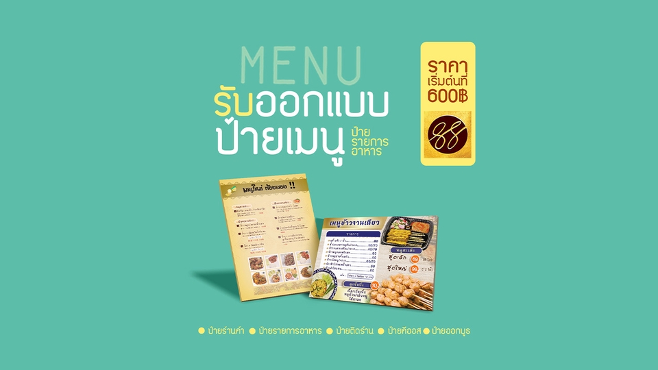 ออกแบบป้ายเมนู แบบ 3-5 หน้า (🚩750-800 บาท/ชิ้นงาน : คำนวนตามรายละเอียดงานค่ะ)