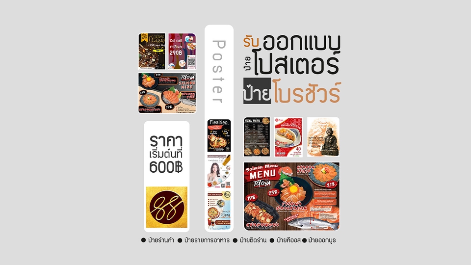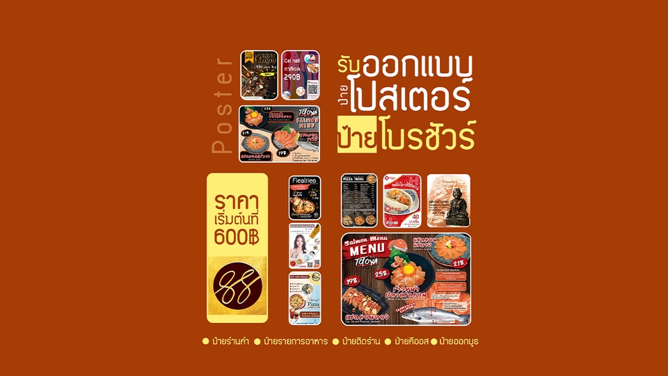 ออกแบบป้าย 5 ชิ้นงาน (🚩650 บาท/ชิ้นงาน ✅ลดเหลือ 500/ชิ้นงาน)