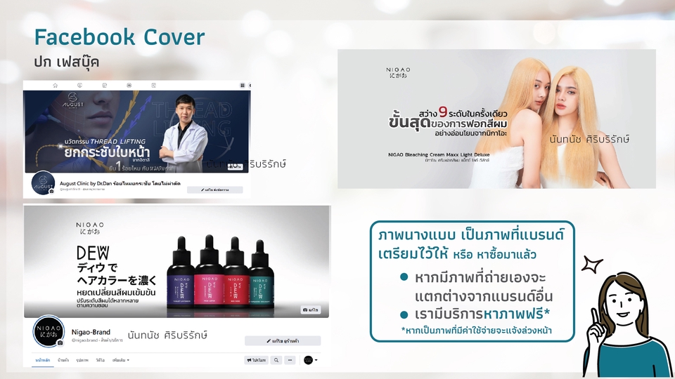 ออกแบบสื่อครบวงจร สไตล์ความงามเรียบหรูดูแพง พร้อมการให้คำปรึกษาฟรีตลอดระยะการทำงาน แบนเนอร์ บิลบอร์ด ออกแบบสื่อภาพรวมของแบรนด์ สถานเสริมความงาม คลินิคทำฟัน แบรนด์ผิว แบรนด์เครื่องสำอางค์ แบรนด์ที่ต้องการภาพลักษณ์ที่ดูแพง ปรับภาพลักษณ์ให้ดูโมเดิร์นเรียบหรู มินิมอล ขั้นตอนการทำงาน 1. รับ 1.บรีฟสไตล์งาน 2.คอนเท้นท์ 3.โลโก้PNG หรือ Ai 4.ภาพ จากแบรนด์ (คอนเท้นท์และแคปชั่นจากแบรนด์ ถ้ามีก็ส่งมาได้เลยค่ะ)) 2. เริ่มงานออกแบบ ส่งดราฟเพื่อแก้ไข 3. แก้ไขและส่งอีกครั้ง (วนจนกว่าจะพอใจ) ค่าแก้ไขที่เกินจำนวนครั้ง ครั้งละ 500 บาท + เลื่อนDeadline การส่งงาน 1 วัน 4. แก้ไข 1-2 ครั้งฟรี ไม่มีการแก้ไขงานย้อนหลัง (ตามบรีฟ หากมีการแก้ไขแบบเปลี่ยนงานเกิน 50% มีค่าแก้ไข50%จากราคาเดิม) 5. จบงาน