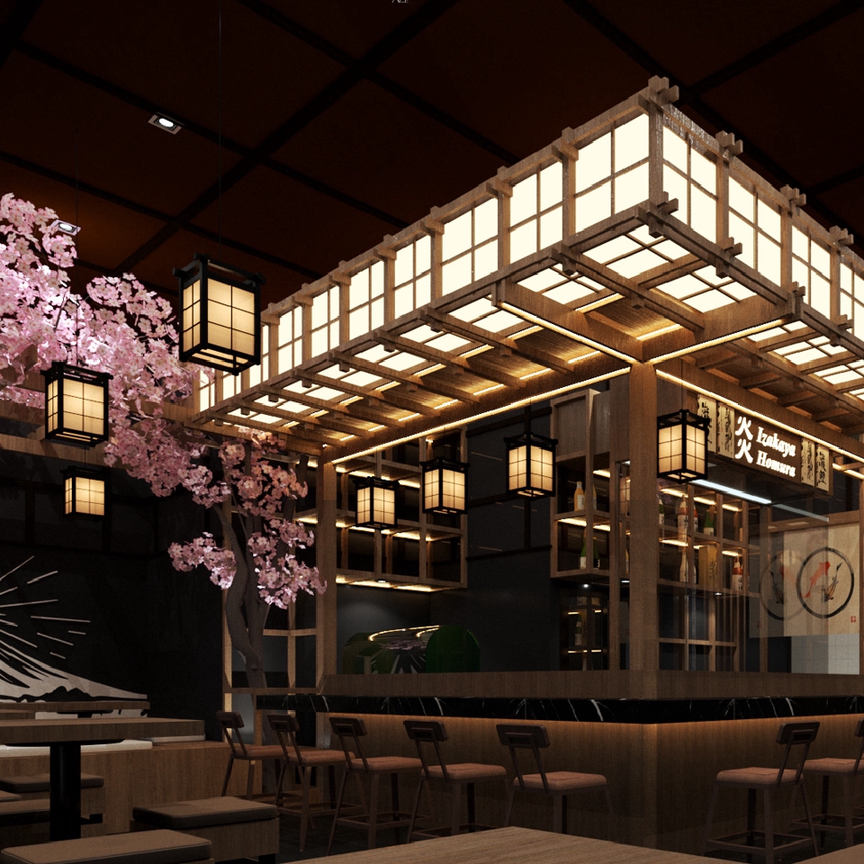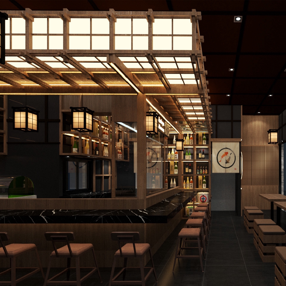 งานออกแบบตกแต่งภายในร้านอาหารและร้านกินดื่มสไตล์ญี่ปุ่น หรือร้านอิซากายะ ที่ให้บรรยากาศน่านั่งและดูอบอุ่น มีทั้งการตกแต่งไม้ตกแต่งแบบญี่ปุ่นและการตกแต่งด้วยกราฟฟิกต่างๆ ที่แสดงถึงสัญลักษณ์ของประเทศญี่ปุ่น โดยโจทย์ที่ได้รับคือร้านที่มีเค้าเตอร์ตรงกลางร้าน ที่ให้แขกเห็นการทำอาหาร และตกแต่งให้สื่อถึงร้านเหล้า รวมถึงมีที่นั่งหน้าเคานท์เตอร์และ เป็นกลุ่มให้ลูกค้าหลายแบบได้เลือกนั่ง ขั้นตอนการทำงาน 1. Proposal Design- Conceptaul Design คุยรายละเอียดการออกแบบ การใช้งาน แนวคิดที่ต้องการ เพื่อเสนอแบบร่างขั้นแรกและ Concept ของงาน ใช้เวลา 7 วันทำงาน 2. Develop Design 1 - ปรับแก้ไขแบบเพื่อให้ได้แบบที่ลูกค้าต้องการครังที่ 1 (การแก้ไขในจุดหลักๆสำคัญขแงแบบ) ใช้เวลาแก้ไขแบบ 7-14 วัน 3. Develop Design 2 - Develop Design 3 -ปรับแก้ไขแบบเพื่อให้ได้แบบที่ลูกค้าต้องการต่อครั้งที่ 2- 3 ใช้เวลาแก้ไขแบบ 7-14 วัน ไม่รวมเวลารอคอมเม้น 4. Final Design สรุปแบบสุดท้ายของการออกแบบ เพื่อนำแบบไปสู่การเขียนแบบขออนุญาตก่อสร้างและแบบก่อสร้างตามการตกลงจ้างงาน