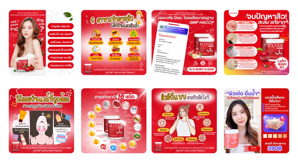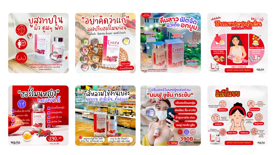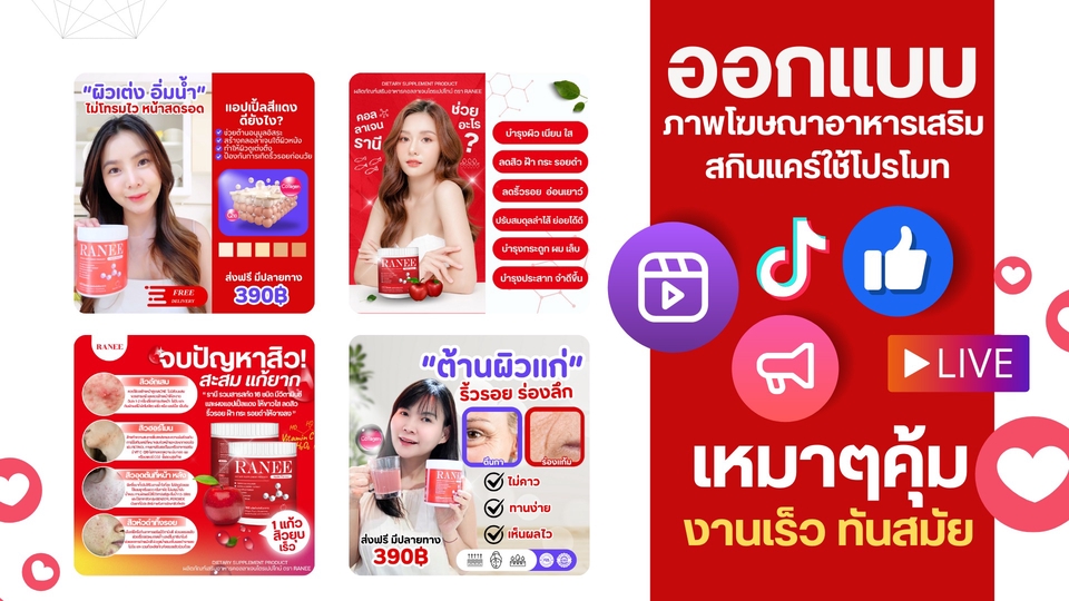 ออกแบบภาพ วิดีโอโฆษณาอาหารเสริม สกินแคร์ สื่อออนไลน์ FB/IG/TIKTOK/REELS