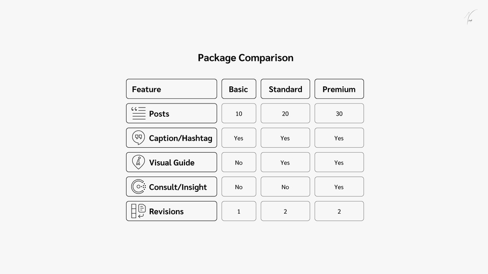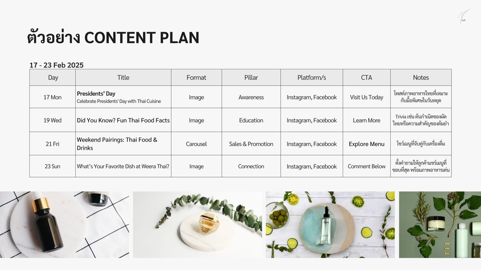 ฿2,000Content Plan 20 โพสต์ พร้อมหัวข้อ Caption และ Hashtag จัดทำเป็น Content Calendar รายเดือน เน้นการวางแผนให้ต่อเนื่องและสอดคล้องกับกลยุทธ์การตลาด