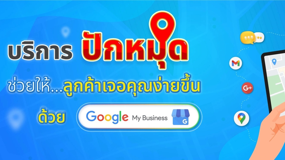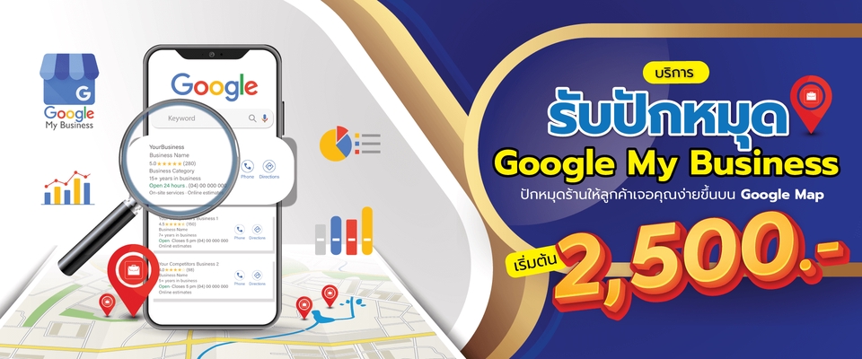 ฿2,500“ เพิ่มโอกาสทางธุรกิจของคุณด้วย ” Google My Business - ปักหมุดร้านให้ลูกค้าเจอคุณง่ายขึ้นบน Google Map - สร้างบัญชี Google my business - ปักหมุดแผนที่ Google map Location 1 สถานที่ - ลงรายละเอียดข้อมูลธุรกิจให้ครบ - เขียนรีวิวให้ 5 รีวิว - Verifly หรือ ยืนยันธุรกิจให้จนจบขั้นตอน *** จ่ายครั้งเดียวจบ ไม่มีรายปี ***