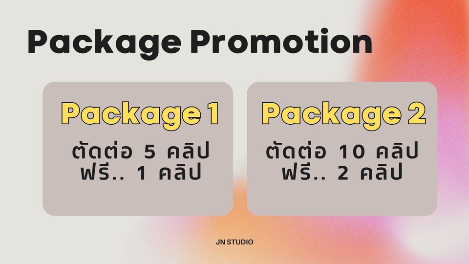 ฿800- ลูกค้ามีวีดีโอฟุตเทจมาให้แล้ว - ความยาวไม่เกิน 1-1.30 นาที จำนวน 1 คลิป - แก้ไขคลิปได้ 2 ครั้ง - ใส่ Subtitle + Voice เสียงผู้หญิง - ความชัด 1080p (ส่งคลิปที่ถ่ายแล้ว+ส่งงานผ่าน Google Drive)