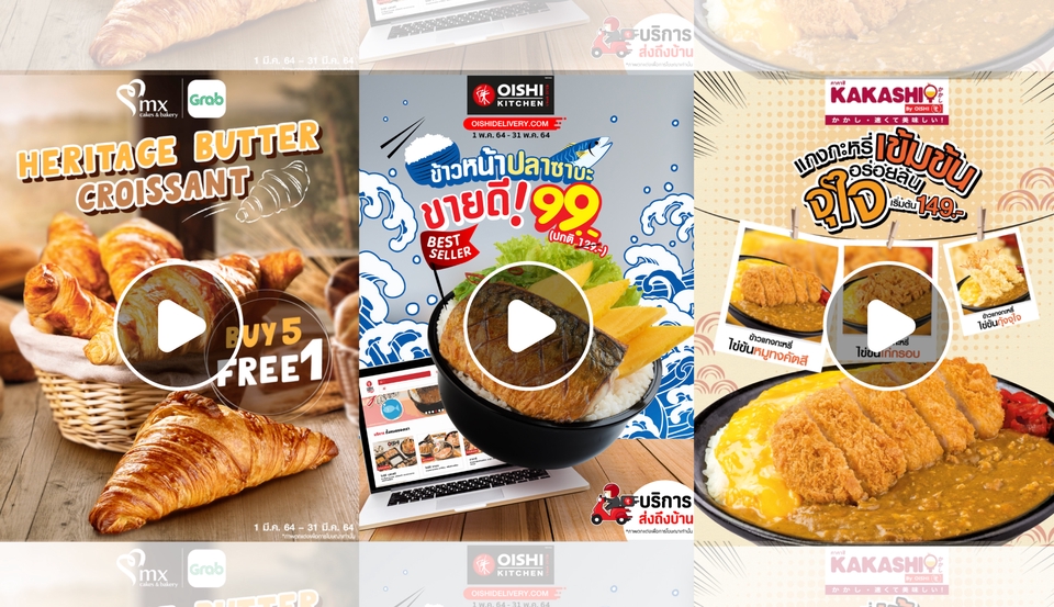 ราคาเหมา Artwork Design + VDO Motion Graphic ความยาวคลิปไม่เกิน 10 วินาที จำนวน 5 ชิ้นงาน