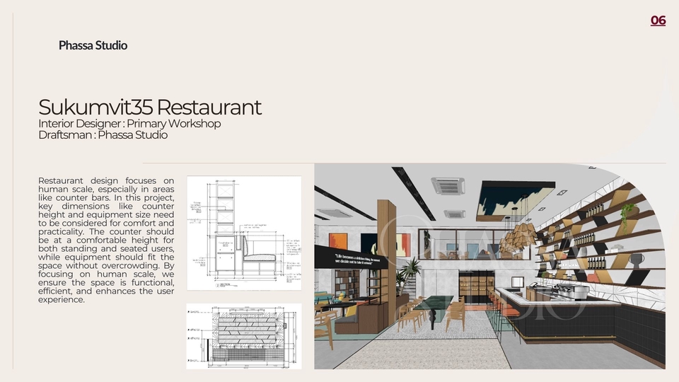 1.รับ Sketch และ ข้อมูลจากลูกค้า เช่น - รูปภาพ Perspective - Plan เป็นไฟล์ Autocad หรือสเกตที่มีขนาดและระยะ เพื่อเริ่มต้นทำงาน - รายละเอียดของสี/วัสดุ 2.ตกลงราคา ระยะเวลาในการส่งงาน และรายละเอียดของการทำงาน A3 ราคาเริ่มต้น 700 บาท A1 ราคาเริ่มต้น 1500 บาท *ขึ้นอยูกับรายละเอียดของงาน* 3.หลังจากลูกค้ากดโอนเงิน จะเริ่มทำงานทันที 4.แก้ไขงานตาม comment ***แก้งานได้ไม่เกิน 3 ครั้ง / ครั้งต่อไปคิดเงินเพิ่มตามความเหมาะสม 6.ส่งชิ้นงาน Final พร้อมจัดหน้ากระดาษ A3หรือA1 เป็นไฟล์ PDFโดยอัพโหลดผ่านเว็ป รายละเอียดราคาเพิ่มเติม - รับทำภาพ perspective ภายในเริ่มต้น ภาพละ 2500 - ขึ้น model 3D เล็กๆ เริ่มต้น 500-1000 ตามความเหมาะสม - ทำพรีเซนต์โดยโปรแกรม Sketch-up ***ราคาอาจเพิ่ม-ลดราคาตามความยากง่ายของงาน ขั้นตอนการทำงาน 1. รับข้อมูลจากลูกค้า 2. ประเมิฯระยะเวลาการทำงาน และราคา จากข้อมูลที่ลูกค้ามี 3. เสอนราคา หากลูกค้าอนุมัติจะเริ่มงานทันที 4. ทำงานส่งให้ลูกค้า ตรวจเช็ครอบที่ 1 5. รอคอมเม้น จากลูกค้า รอบที่ 1 (ถ้ามี) 6. ทำงานส่งให้ลูกค้า ตรวจเช็ครอบที่ 2 7. รอคอมเม้น จากลูกค้า รอบที่ 2 (ถ้ามี) 8. ส่งงานให้ลูกค้าอนุมัต หากมีแก้ไขหลังจากนี้อาจจะมีค่าใช้จ่ายเพิ่ม แต่ถ้าแก้ไม่เยอะสามารถทำให้จบงานได้โดยไม่มีค่าใช้จ่าย ทั้งนี้ขึ้นอยู่กับทางเราจะประเมิณให้ลูกค้าเองตามความเหมาะสม