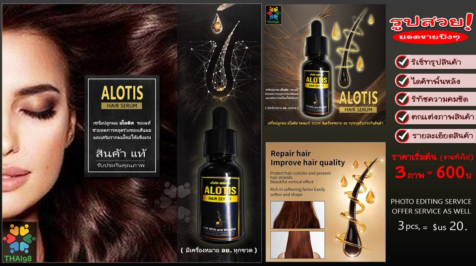รับแต่งรูปสินค้าออนไลน์ ภาพสื่อโฆษณา ตามจินตนาการตรงกับตัวสินค้า ให้ดูสวยโดดเด่น น่าสนใจ ยกระดับคุณค่าสินค้า..สวย..หรู..ดูแพง ยอดคำสั่งซื้อเพิ่มขึ้นได้แน่นอน Editing Photo Service, best graphic social media design for Adv, post to a BOOST. ขั้นตอนการทำงาน 1. คุยรายละเอียดของชิ้นงาน 2. ลูกค้าถ่ายรูปสินค้า ให้คมชัด ไม่สั่น ไม่เบลอ (ยินดีให้คำแนะนำการถ่ายรูป) 3. กำหนดระยะเวลางาน 4. ชำระเงินตามแพ็กเกจ 5. ส่งรูปชิ้นงานที่ทำเสร็จแล้วให้พิจารณาและแก้ไขตามเงิ่อนไขที่ระบุ 6. ส่งมอบงานให้ลูกค้า