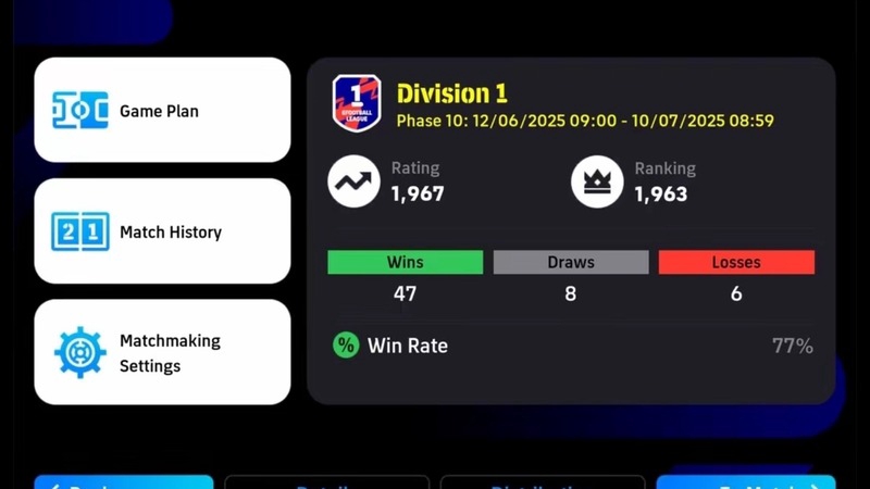 รับจ้างดันแรงค์ Efootball/Pes D3-D1