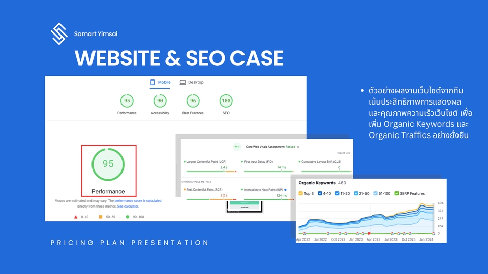 การันตีด้วยผลลัพธ์ จากผู้เชี่ยวชาญที่ทำให้กับเว็บไซต์ธนาคาร ประกัน และอื่นๆ อีกมากมายมาแล้ว - วิเคราะห์เจาะลึก และให้คำแนะนำในการปรับปรุงเว็บให้ติดหน้าแรก Google Search - รับทำทุกประเภทเว็บไซต์ - มีบริการปรับแก้หน้าเว็บไซต์ - เว็บไซต์ยั่งยืน ติดอันดับในหน้าแรกระยะยาว ขั้นตอนการทำงาน 1. ลูกค้าแจ้ง URL เว็บไซต์ลูกค้า Keywords ที่ต้องการปรับปรุง และเว็บไซต์คู่แข่ง(หากมี) 2. ประเมินและเสนอราคา 3. ตกลงราคาและชำระเงิน 4. วิเคราะห์และส่งคำแนะนำให้ลูกค้าภายใน 10-50 วัน