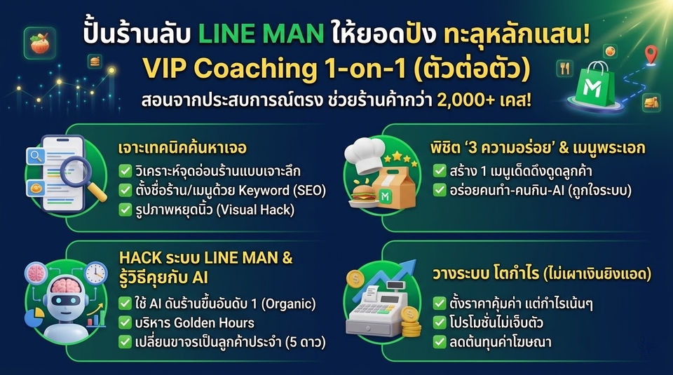 คอร์สตัวต่อตัว ปั้นร้าน LINE MAN ให้รับล้าน / 1 ชั่วโมง