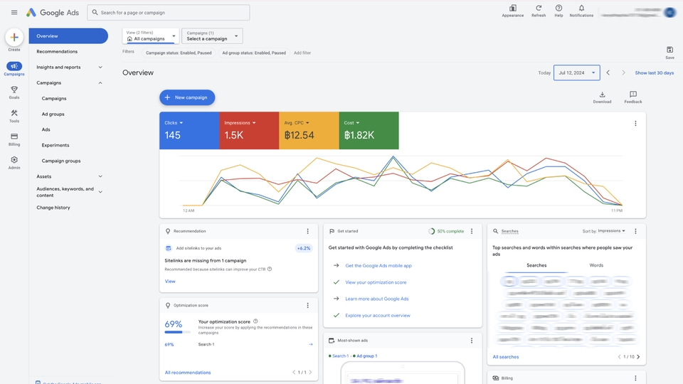 ฿3,000แพ็คเกจที่ครอบคลุมรวมถึงบริการ Google Ads และเครื่องมือวิเคราะห์ที่จำเป็นเพื่อวัดและปรับปรุงประสิทธิภาพ *** ราคานี้เพื่อการจ้างลงโฆษณาเท่านั้น ไม่รวมงบค่ายิงโฆษณา และไม่รวมทำreport